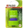 Пластмассовый быстросъемный соединитель Palisad 66165 с аквастопом совместим со шлангами диаметром 3/4 дюйма и позволяет подключать их к распыляющим насадкам. Будет полезен при монтаже системы орошения на дачном участке.