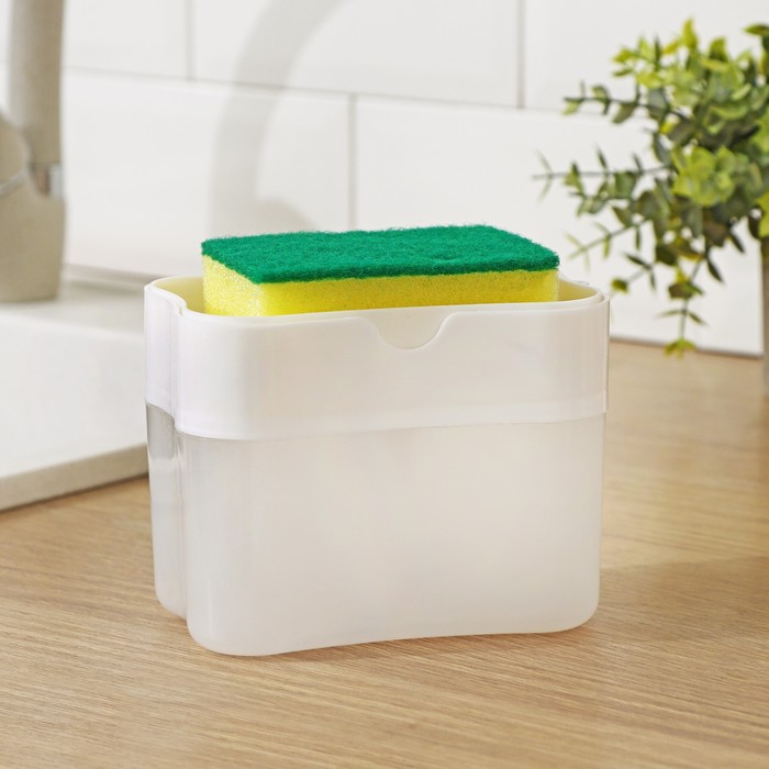 Дозатор для моющего средства с подставкой для губки , губка в комплекте, 385 мл, цвет белый