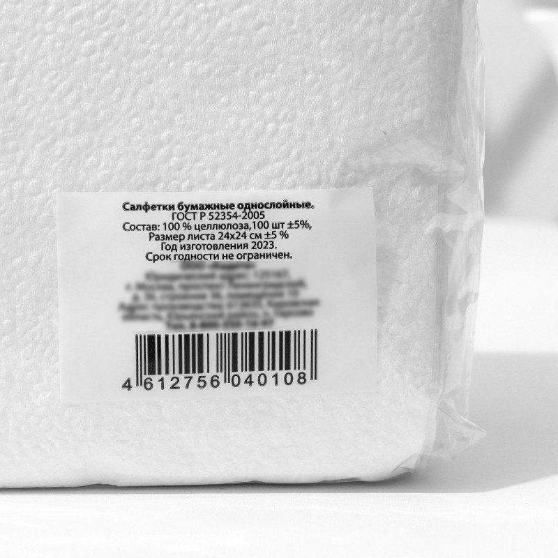 Салфетки бумажные, 24х24 см, 100 шт, белые