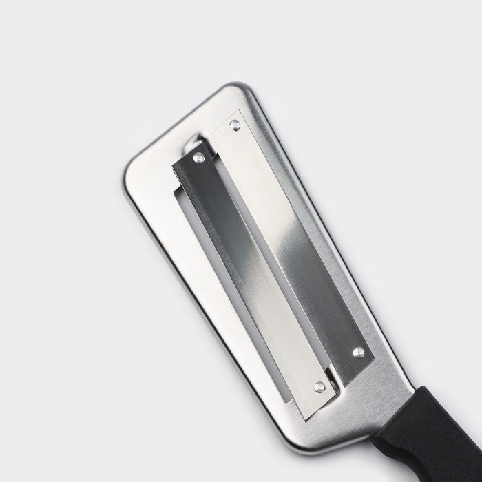 Два острых лезвия из нержавеющей стали расположены под безопасным углом, что исключает вероятность пореза пальцев.