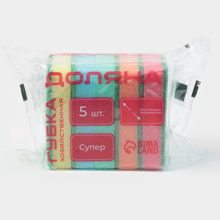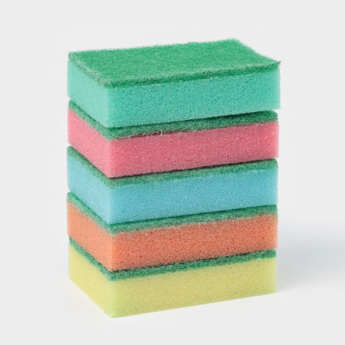Набор губок бытовых с чистящим слоем, 9х6х2,5 см, 5шт "Стандарт"