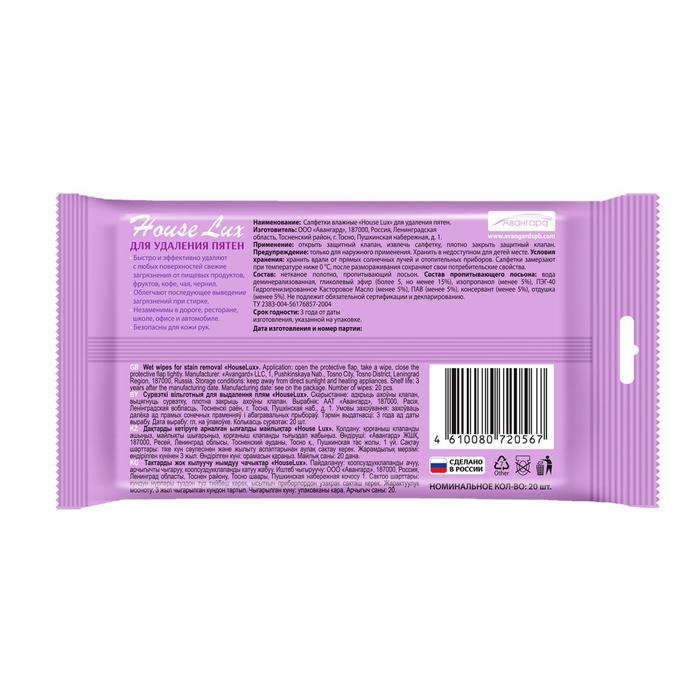 Влажные салфетки для удаления пятен, 20шт, House Lux