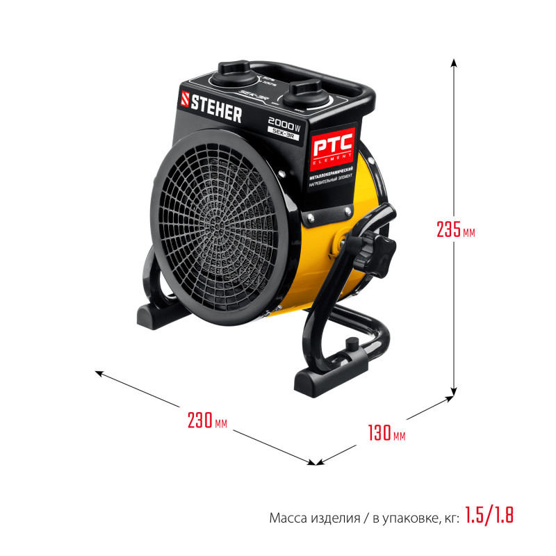 Электрическая тепловая пушка STEHER 2 кВт, МКН SEK-3R имеет долговечный керамический нагревательный элемент.