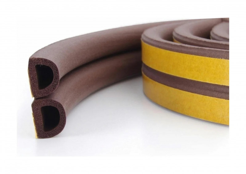 Уплотнитель бытовой резиновый WALLS D-профиль самоклеющийся коричневый 10м