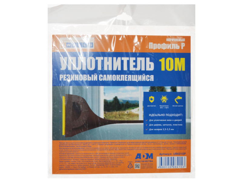 Уплотнитель бытовой резиновый WALLS Р-профиль самоклеющийся коричневый 10м