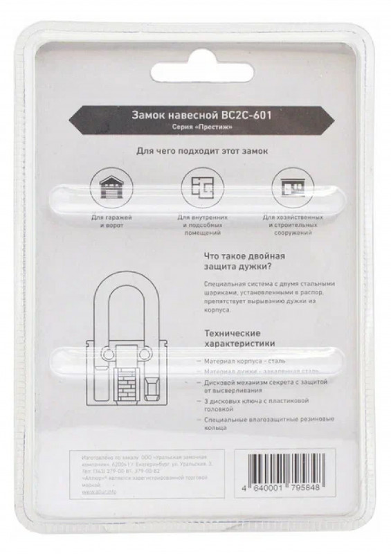 Замок навесной ВС2С-601 d-10,5мм Аллюр черный в наличии по цене 725 рублей в интернет-магазине «ЖЕЛЕЗО» в в Казани. Мы предлагаем лучшую стоимость на категорию замок навесной. Приобрести Замок навесной ВС2С-601 d-10,5мм Аллюр черный можно оформив заказ в интернет-магазине, или отправив заявку по почте, а также по телефону 8 (800) 444-50-26 или в магазине. Бесплатная доставка при заказе от 1000 руб.