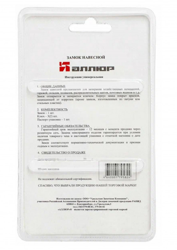 Навесной металлический замок предназначен для хозяйственных построек, гаражей и складов.В комплект входят 3 ключа.