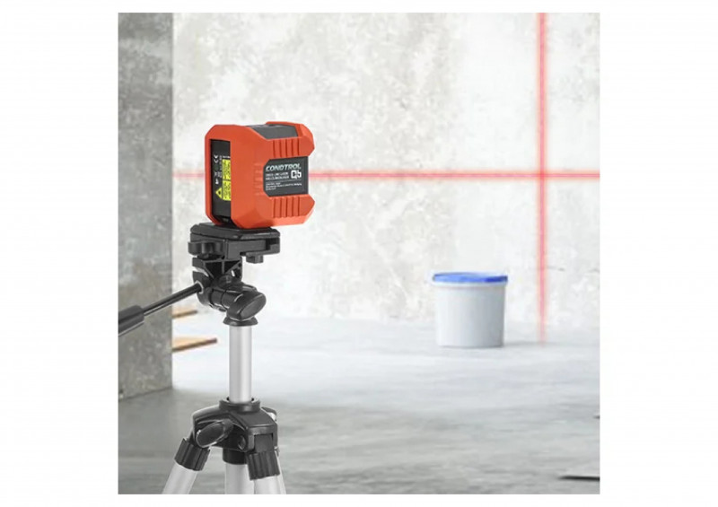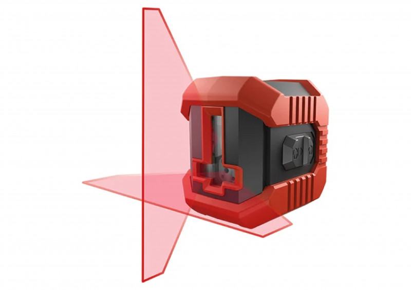 Лазерный нивелир проецирует горизонтальную и вертикальную линии. Он широко используется при укладке кафеля, установке карнизов, монтаже мебели и т.д. Возможно раздельное включение плоскостей, а также предусмотрен режим построения наклонных лазерных линий. В комплект входит легкий алюминиевый штатив, у которого выдвигается центральная секция. Высота регулируется в диапазоне 14 см