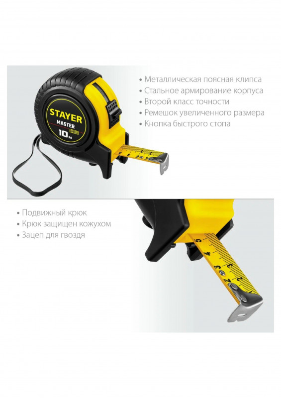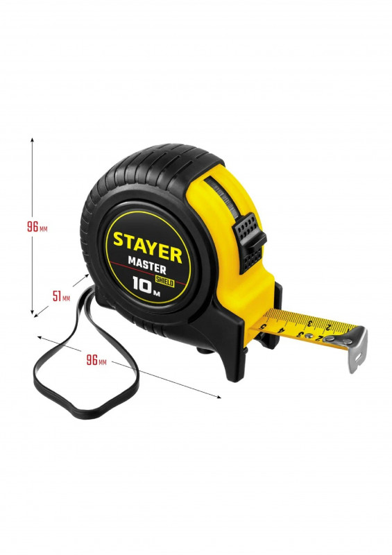 Рулетка в ударостойком обрезиненном корпусе 25ммх10м STAYER MASTER