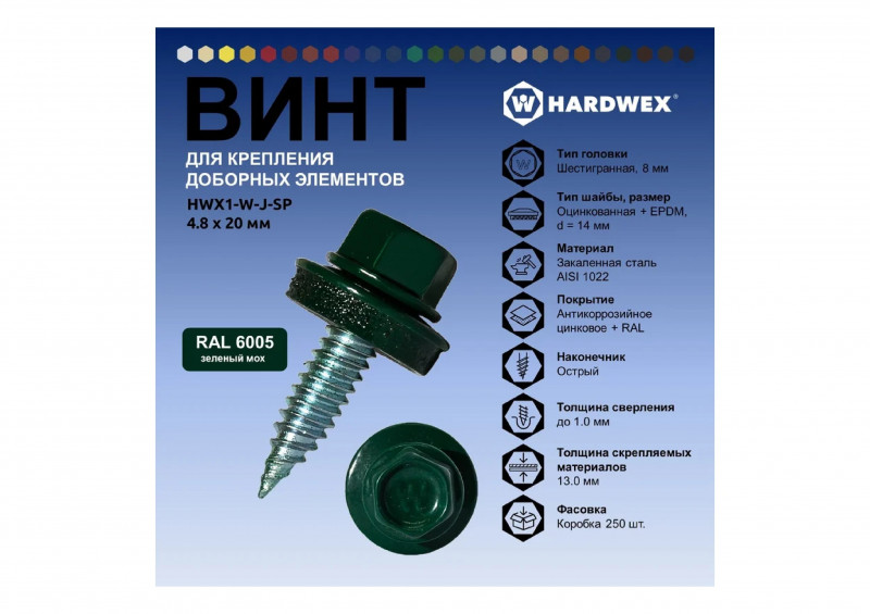 Саморез кровельный HWX1-W-J-SP уп/50шт 4,8х20мм TM Hardwex в наличии по цене 392 рублей в интернет-магазине «ЖЕЛЕЗО» в в Казани. Мы предлагаем лучшую стоимость на категорию саморезы кровельные с шайбой . Приобрести Саморез кровельный HWX1-W-J-SP уп/50шт 4,8х20мм TM Hardwex можно оформив заказ в интернет-магазине, или отправив заявку по почте, а также по телефону 8 (800) 444-50-26 или в магазине. Бесплатная доставка при заказе от 1000 руб.