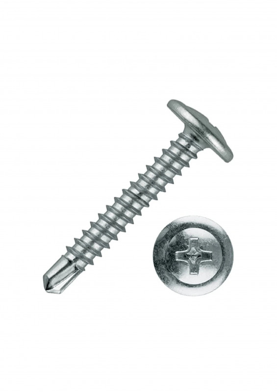 саморез имеет резьбу с мелким шагом, наконечник со способностью просверливания до 2 мм. Наконечник может быть выполнен в двух вариантах: острый и сверловидный. Полусферическая головка "Phillips №2" (Ph2), с пресс-шайбой. Под головкой имеются насечки, препятствующие самопроизвольному отворачиванию. саморез с напрессованной шайбой применяется для монтажных работ, соединения элементов листового металла, тонколистовой стали.